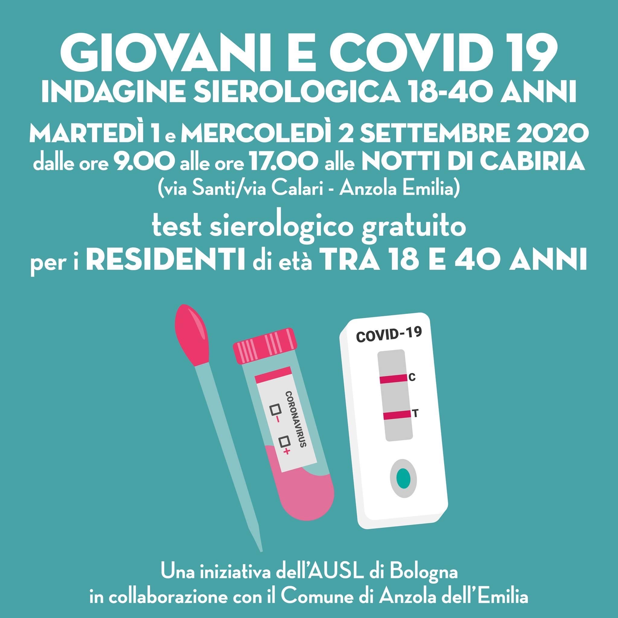 sarà possibile effettuare il test sierologico cromatografico gratuito per i residenti di età tra 18 e 40 anni.